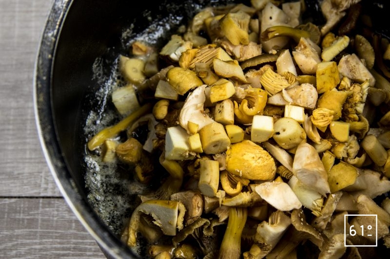 Filtrer et presser les champignons pour recupérer le maximum de liquide.