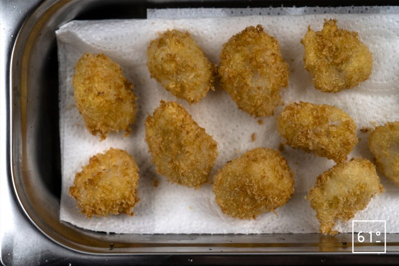 Frire les Saint Jacques 30 à 45 s à 170 °C.
